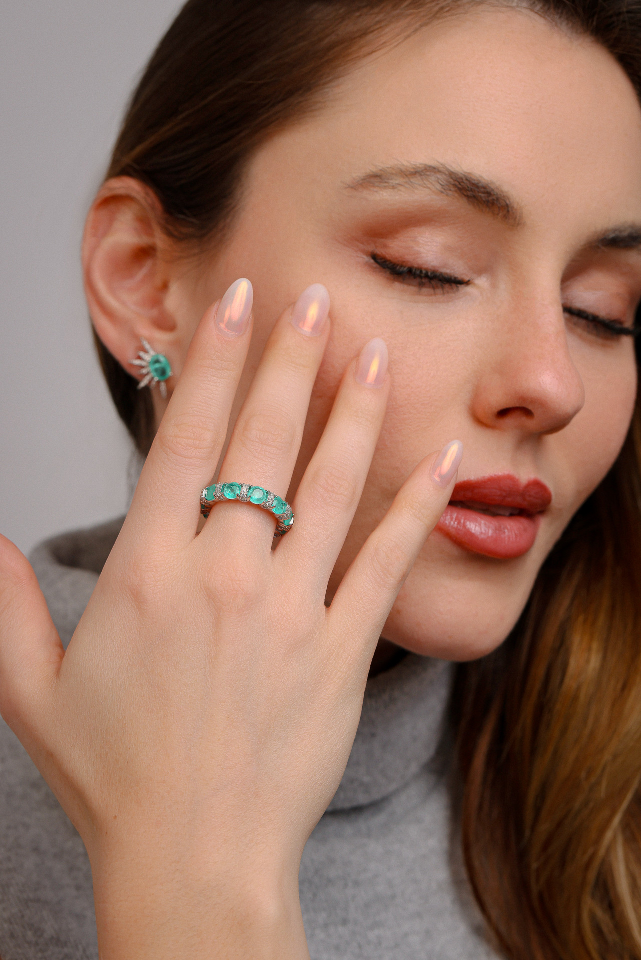 A sofisticação da alta joalheria em uma semijoia imponente e encantadora. O Anel Colombiana Olívia da coleção BY Mel Galhardo é um verdadeiro statement de estilo: combina elegância clássica com presença marcante. Sua estrutura traz pedras tipo colombiana em tom verde vibrante — que remetem à beleza da esmeralda — intercaladas por fileiras cravejadas de zircônias cristal, que intensificam ainda mais o brilho e a riqueza do design.