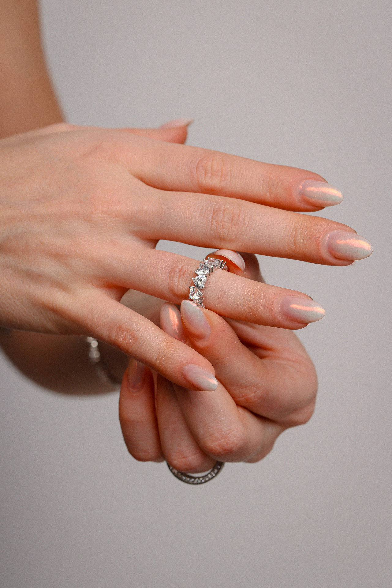 A estrutura é reforçada, com cravação precisa e acabamento de alta joalheria, tudo isso com banho de prata 925 sobre metal nobre, garantindo durabilidade e um visual digno de joia. Ideal para presentear ou compor mix de anéis com personalidade.