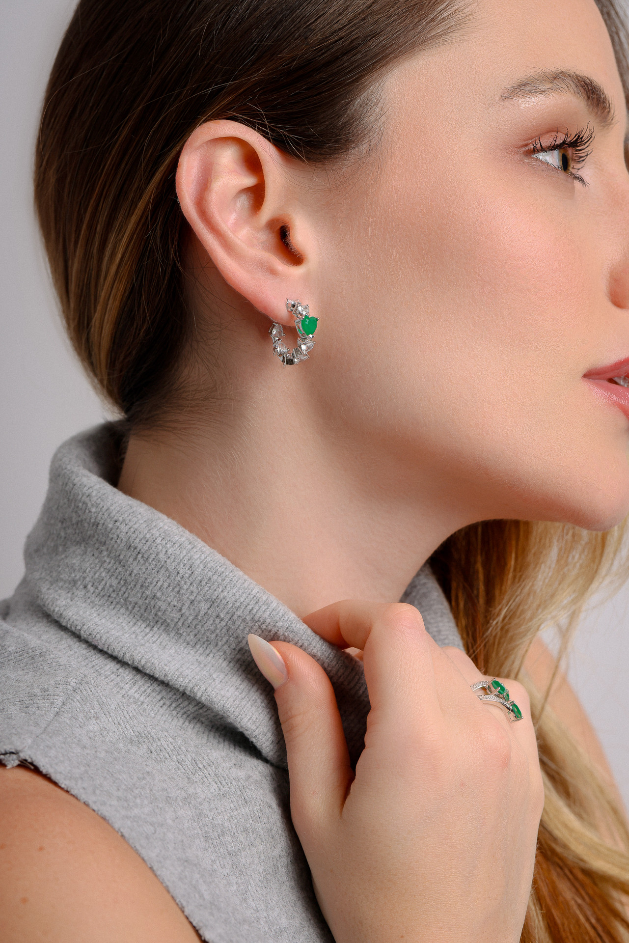 Brinco Argola Corações Esmeralda | Prata 925 |