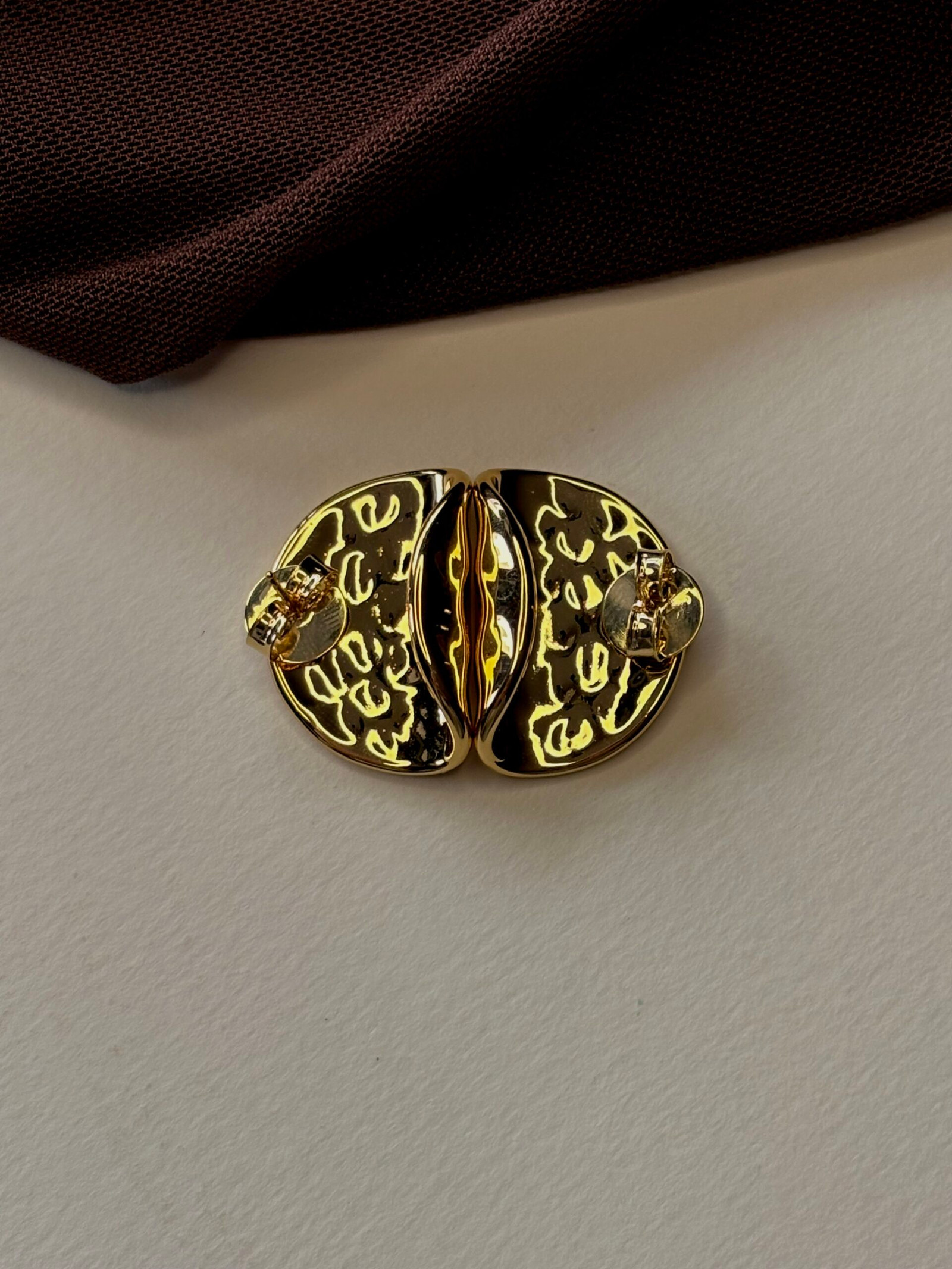Com acabamento polido de alto brilho, a peça reflete a luz de forma delicada, criando um efeito luminoso que valoriza o rosto com discrição e charme. O formato arredondado com base fluida adiciona um toque artístico e moderno, tornando o brinco ideal tanto para composições do dia a dia quanto para produções mais elegantes à noite.