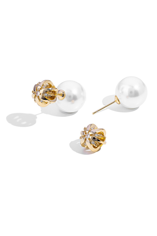 Atemporal e surpreendentemente versátil, esse brinco une o brilho clássico da pérola sintética com o charme da tarraxa estrela — uma peça delicadamente detalhada com banho de ouro e micro zircônias cravejadas. Seu diferencial está na possibilidade de uso invertido: tanto com a estrela à frente quanto com a pérola em destaque, criando dois estilos com uma única peça.