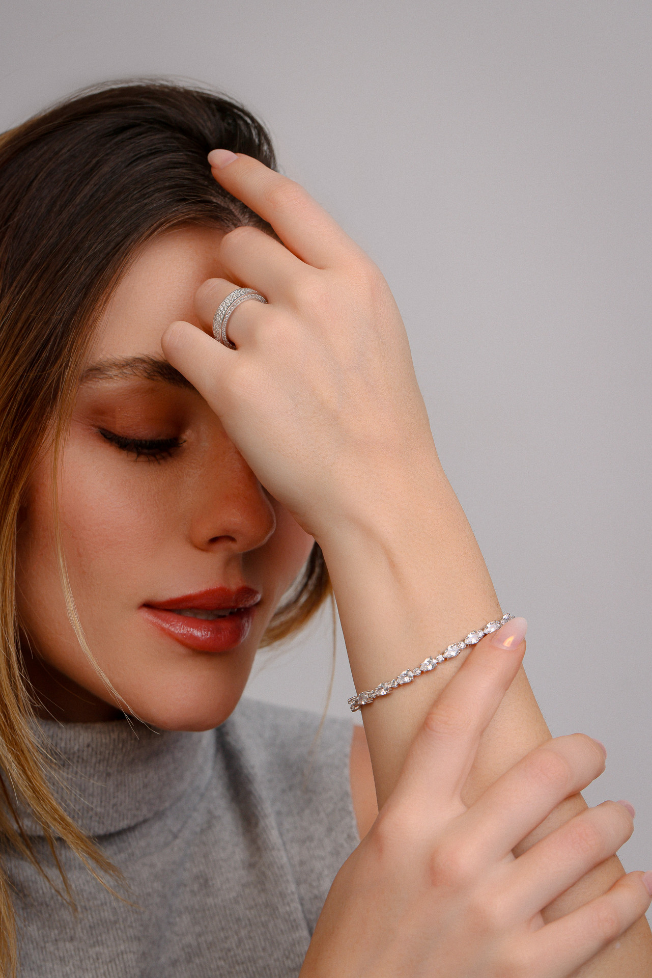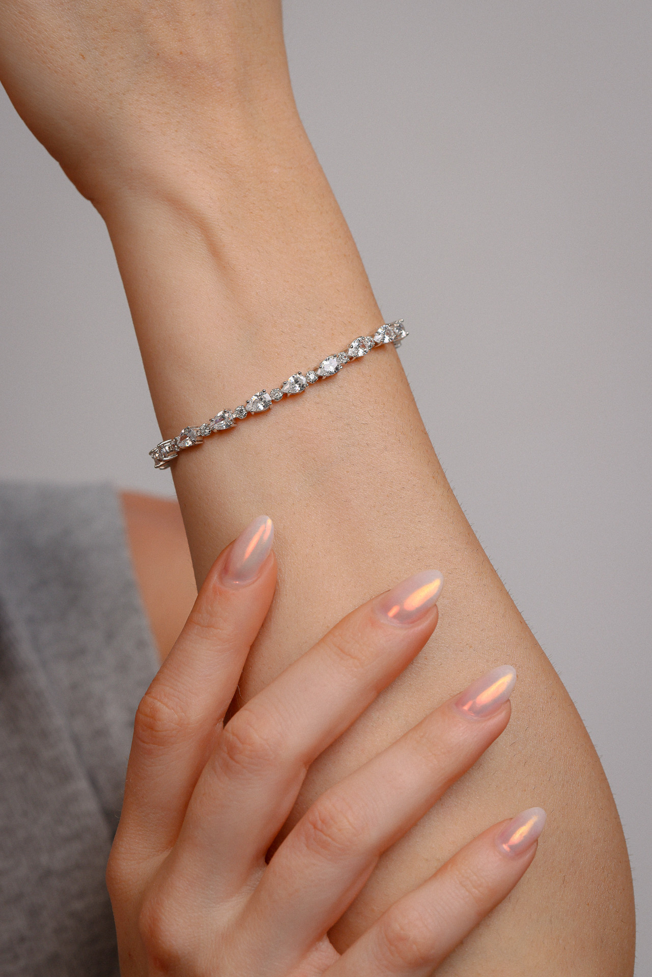 Uma peça que combina leveza e sofisticação com brilho marcante. A pulseira Gotas Cristal apresenta uma sequência de cristais sintéticos em lapidações que alternam entre gota e redondo, conferindo um efeito visual refinado e orgânico. O banho de prata 925 intensifica o brilho das pedras, trazendo um aspecto de alta joalheria com acabamento impecável.
