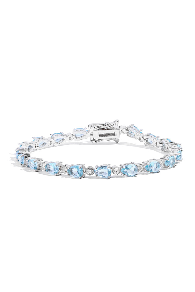 Uma joia que traduz elegância com leveza e brilho. A pulseira gotas traz o charme inconfundível da pedra tipo Água Marinha em lapidações delicadas em formato de gota — perfeita para composições sofisticadas ou para ser protagonista no pulso. Cada pedra é intercalada por pequenos pontos de luz, criando um jogo sutil entre o brilho e a cor.